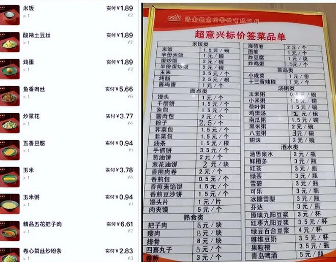 超意兴的菜单,是对“快餐刺客”现象的有力反击。招牌把子肉售价仅为8元,酸辣土豆丝和蚝油冬瓜各2元,卷心菜粉条3元,米饭1.5元,更令人惊讶的是,店内玉米粥免费无限续。