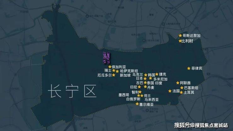 据上海长宁2023年的数据,长宁集聚了近6800家外资企业,其中跨国公司地区总部累计达81家,全区登记境外人口占上海境外人口总数约1/5,区内28家驻沪领事馆也占到了全市总数约1/3。(数据源于公众号上海长宁20230710)