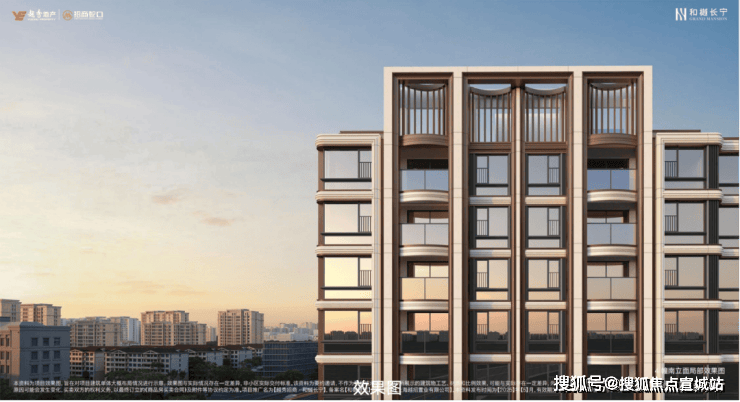 ①经典三段式构图,以先锋手法化繁为简,以现代手法演绎经典。同时,叠加弧形阳台,匹配大尺度窗墙比和标志性塔冠,建筑名片就此诞生。