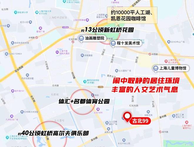 古北 99 官方售楼处营销中心☎:由合生创展打造,地处闵行区姚虹路 99 弄,位于闵行、徐汇、长宁三区交界核心。项目占地约 9.6 万㎡,总建面约 21 万㎡ ,涵盖 133-154㎡精装平层及 300-419㎡联排别墅。近地铁 15 号线 官方售楼处营销中心☎:周边商业繁茂,教育、医疗资源优质,2025 年 9 月交付 。