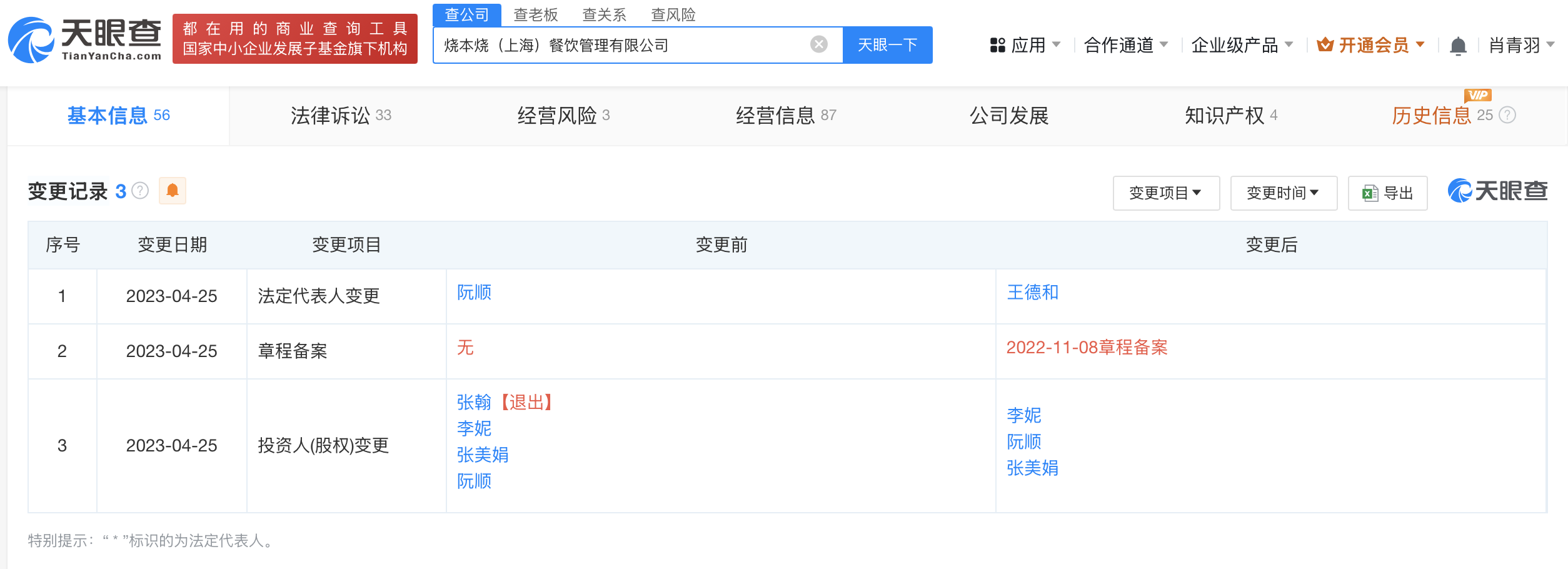 烧本烧公司已面临多重风险。据公开信息,该公司已关联到一起破产案件,申请人为南京众天下餐饮管理有限公司,该案件由上海市第三中级人民法院经办,公开日期为2024年6月。不仅如此,烧本烧公司还因税务问题被国家税务总局上海市静安区税务局列为非正常户,并在2024年7月被上海市静安区市场监督管理局列入经营异常名录。