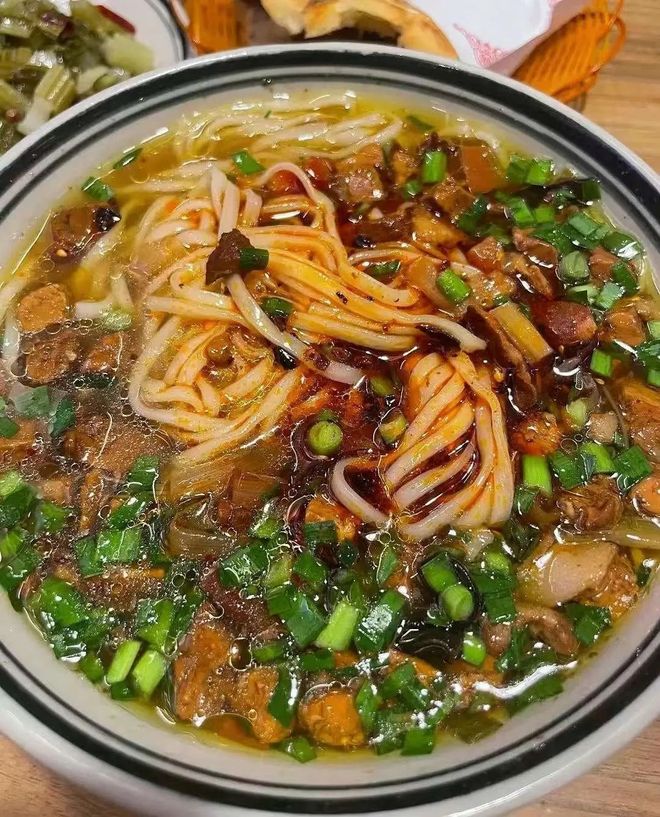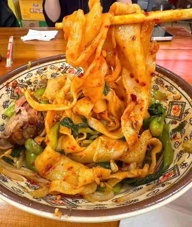 面条嚼起来筋道弹牙,臊子的肉香、辣椒的香辣、葱花的清香全裹在面上,每一口都“duang duang”响,越吃越得劲儿!