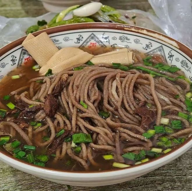 荞面的麦香带着点苦头,却越吃越香,面条筋道耐嚼,配上浓郁的臊子汤,一口下去,浑身都暖和,老陕们就好这一口实在!